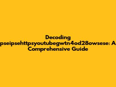 Decoding Pseipsehttpsyoutubegwtn4od28owsese: A Comprehensive Guide