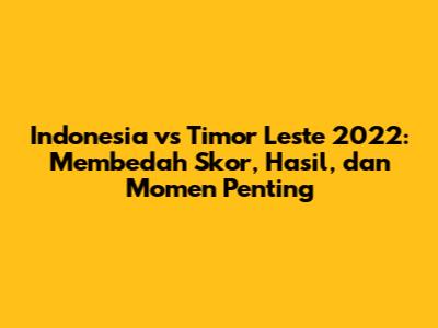 Pertandingan Indonesia vs Timor Leste 2022 adalah sebuah cerita yang menarik dalam dunia sepak bola. Dari persiapan tim, jalannya pertandingan, hingga hasil akhir, semuanya memberikan pelajaran berharga. Semoga artikel ini memberikan informasi yang bermanfaat dan menambah wawasan kita tentang sepak bola.