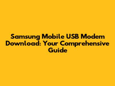 Samsung USB Modem Driver: Free Download & Install Guide