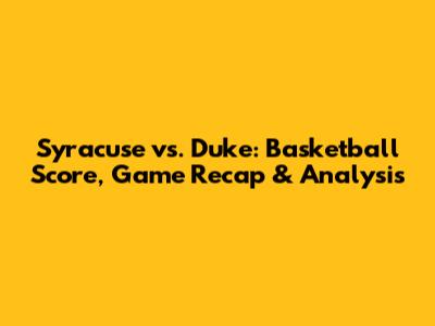 Syracuse Vs. Duke: Basketball Score, Game Recap & Analysis