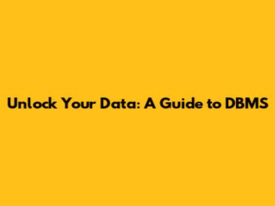 Unlock Your Data: A Guide To DBMS